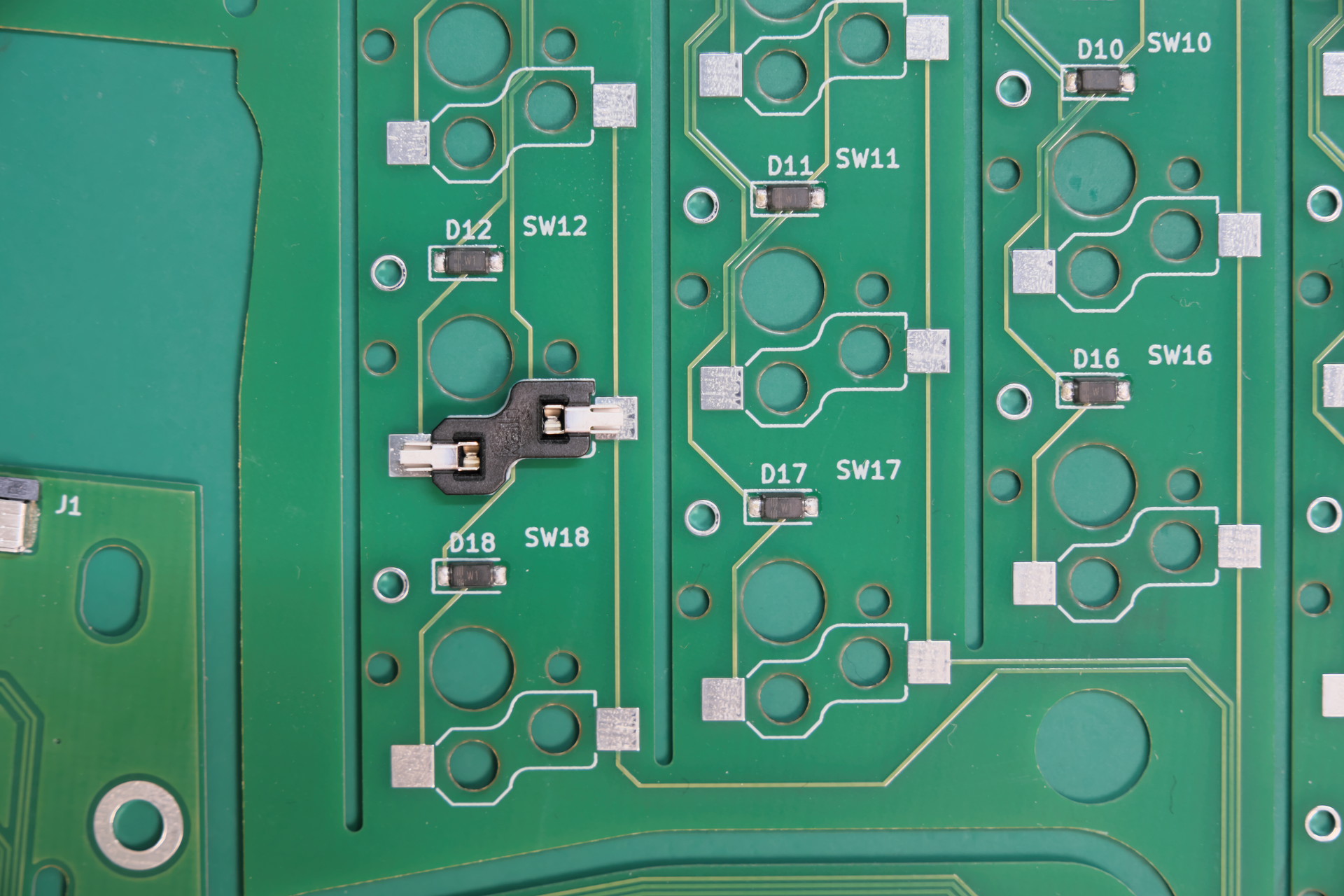 また、PCBが薄いためchocソケットがPCBからはみ出します。そのため、一つ一つ、逆作用ピンセットで抑えながらはんだ付けしてください。