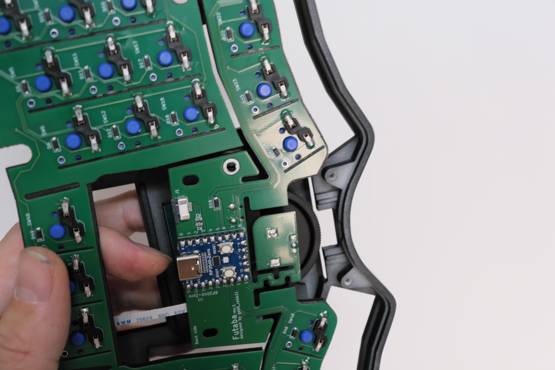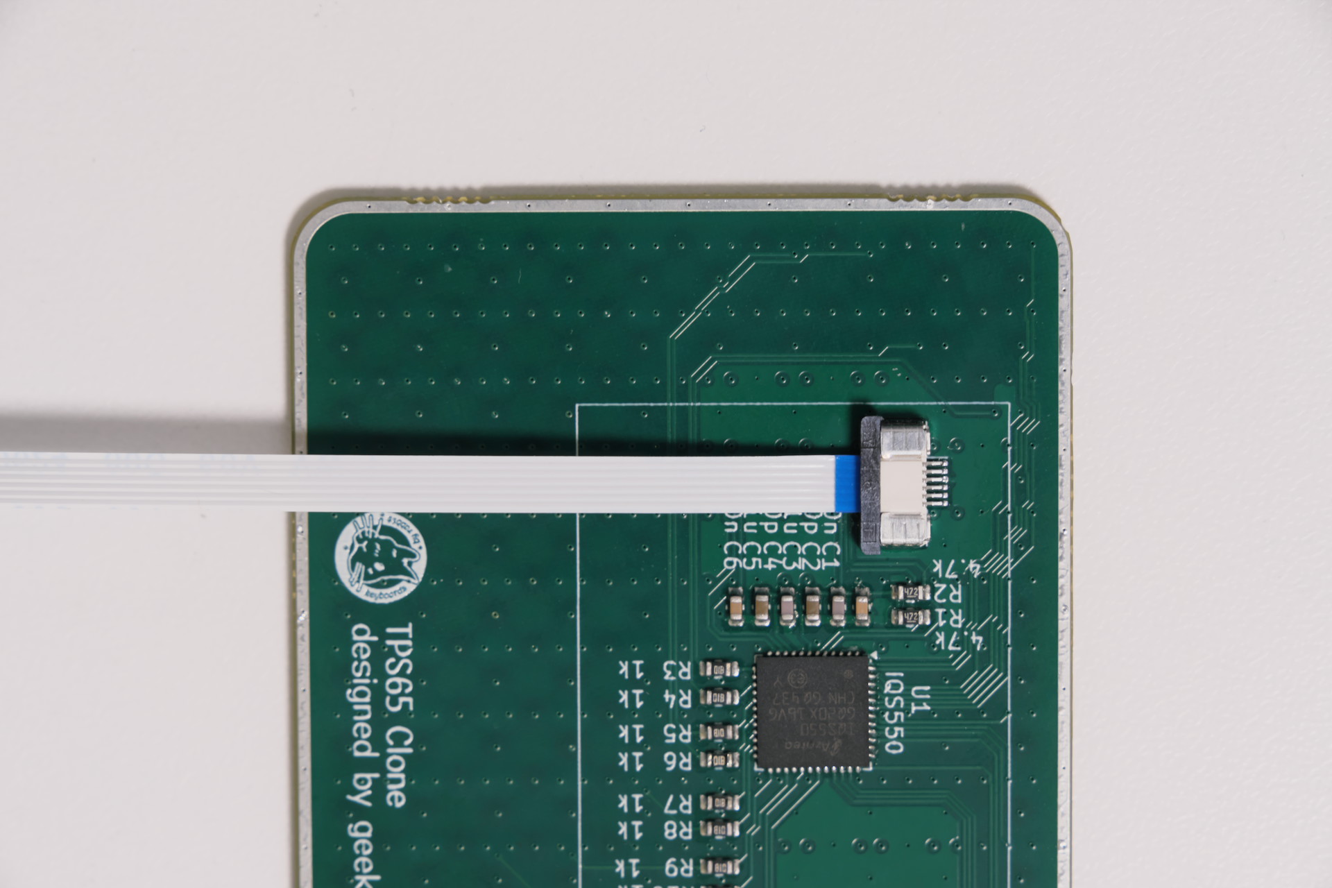フラットケーブルを外している場合、PCBに差し込みトラックパッドと接続します。